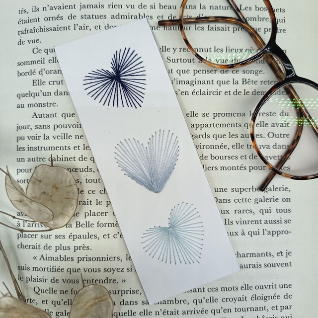 Offrez ce joli marque-pages patiemment brodé à la main sur du papier, symbole de votre amour qui se tisse un peu plus chaque jour...