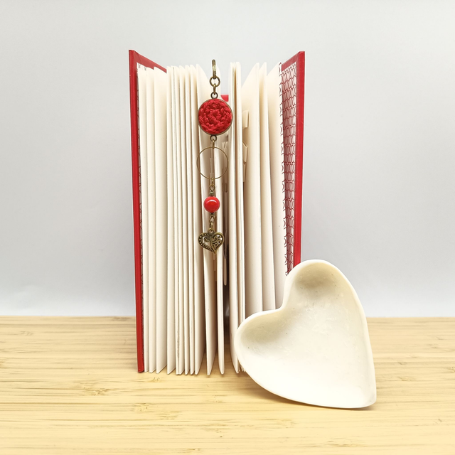 Bijou de livre et marque-pages cabochon rouge et bronze - Coeur
