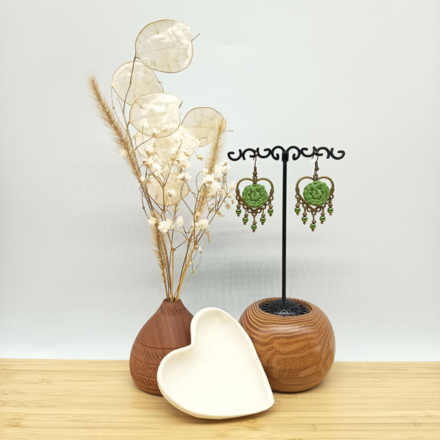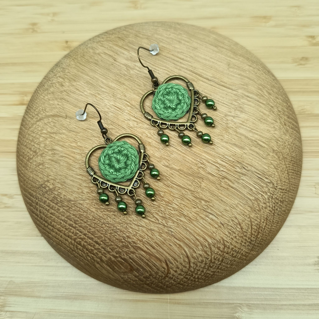 Boucles Cœurs Pampilles d'oreille vert et bronze